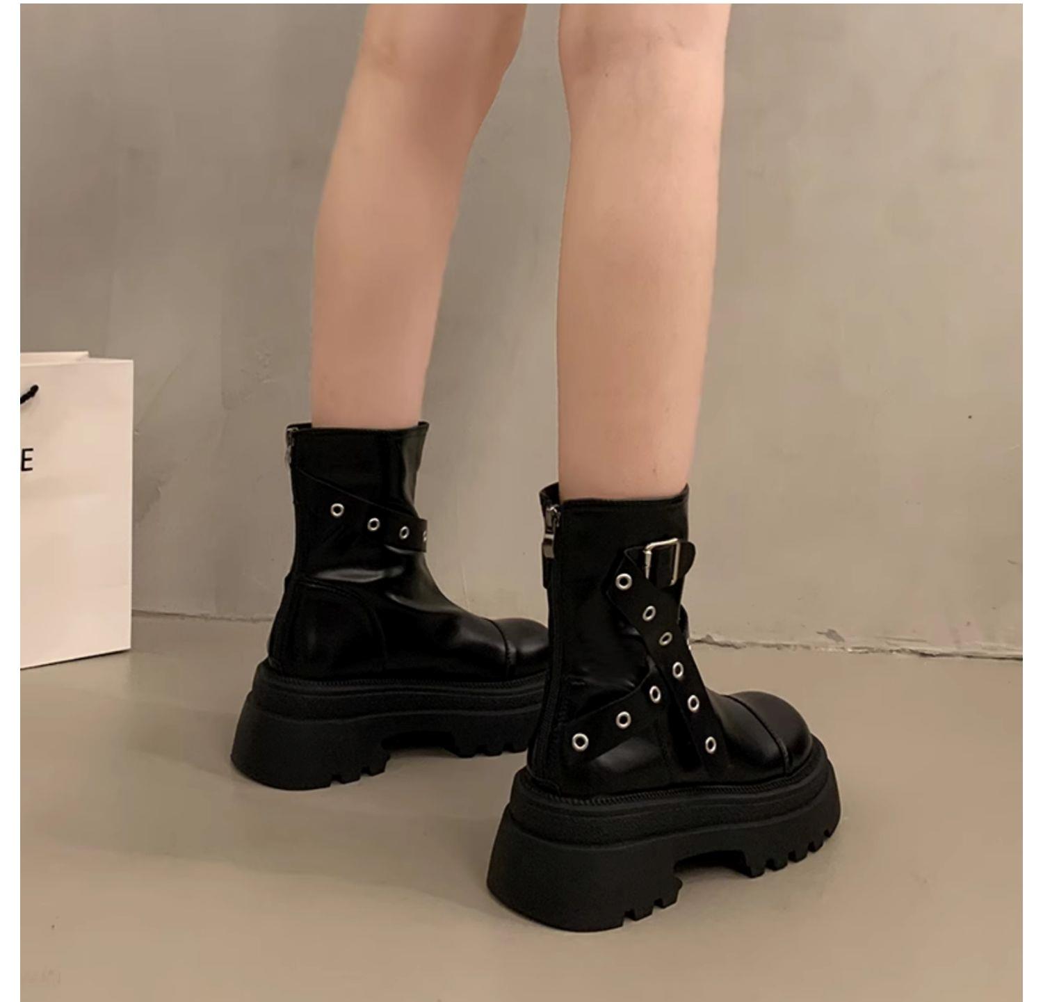 個性的なスタイルを引き立てる厚底ロングブーツ。レース付きソックスとの相性も抜群で、足元に遊び心をプラス。太めのベルトがアクセントとなり、シンプルなコーディネートも一瞬で華やかに変身。デイリーから特別な日まで幅広く活躍する一足。自分らしさを表現するアイテムとして、ぜひ取り入れてみて。